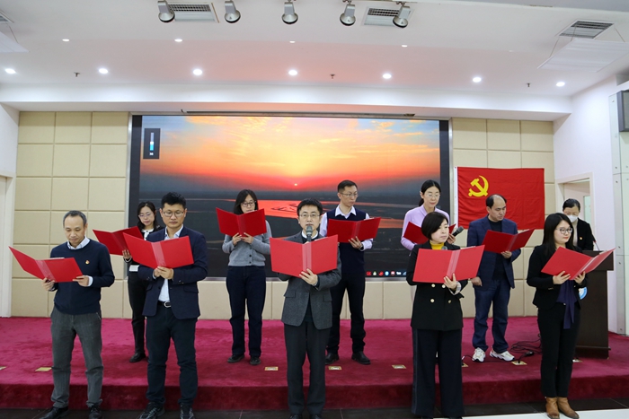 会议为第四季度入党的党员同志过“政治生日”。在张丽萍书记领誓下,全体党员一起举起右手,重温入党誓词,接受党性洗礼。第四季度入党的党员同志表演了饱含深情的诗朗诵《百年回声——黄河浪 长江潮》,展现了中国共产党一百年来不忘初心、砥砺前行的奋斗历程,抒发了热烈澎湃的爱国爱党之情。