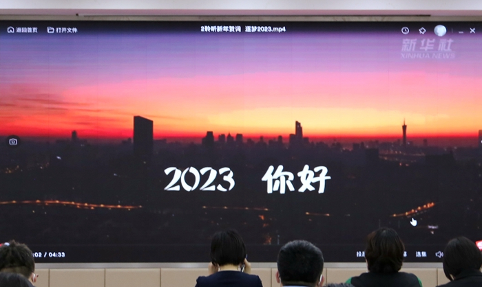 在《观天下守初心》微视频学习环节,大家集体观看了微视频《聆听新年贺词 逐梦2023》,以饱满的状态迈进2023新征程。