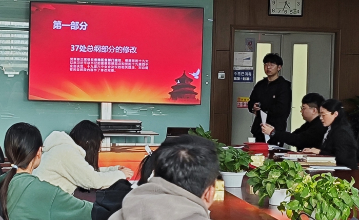 支部青年委员段琦和宣传委员孟维豪分别带领大家学习了《二十大党章修正案》和《二十大报告》。段琦同志向大家介绍了党章的部分修改,把党的初心使命、党的百年奋斗重大成就和历史经验的内容,以及全面建设社会主义现代化国家和以中国式现代化全面推进中华民族伟大复兴的奋斗目标等内容写入党章,各处改动均具有重大意义。孟维豪同志介绍了二十大报告中对过去十年中国特色社会主义现代化发展的绚丽图景的勾勒,对全面建设社会主义现代化国家新篇章的宏伟蓝图的擘画,强调广大青年要坚定不移听党话、跟党走,怀抱梦想又脚踏实地,立志做有理想、敢担当、能吃苦、肯奋斗的新时代好青年。