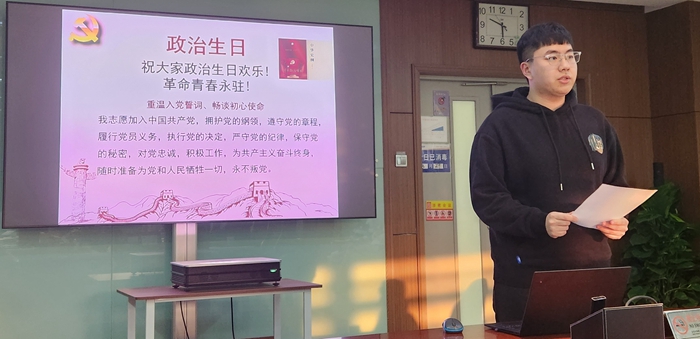 组织委员张哲华主持开展了党员过“政治生日”活动,向20名过“政治生日”的党员致以真诚的祝福,并依次赠送了“政治生日”贺卡。之后,郑美玲带领过政治生日的同志和全体参会党员重温入党誓词。在党旗下庄严宣誓,再次激发了全体党员的光荣感和自豪感。