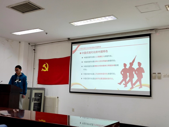 首先,支部组织委员高强带领大家学习了党的二十大报告中“以中国式现代化全面推进中华民族伟大复兴”的相关内容,讲解了中国式现代化的本质和中国特色,以及推进中国式现代化的五个重大原则等。