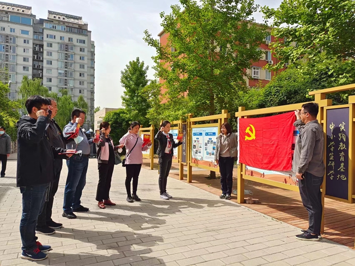 随后,在纪念馆前,支部为第一、二季度入党的党员同志过政治生日,党员面对党旗庄严宣誓,重温入党誓词。