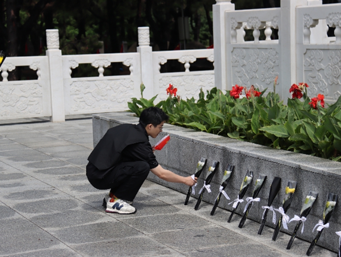 参观完纪念馆后,大家来到抗美援朝烈士纪念碑下进行瞻仰,由王居同志朗诵了魏巍的《最可爱的人》。接下来,全体肃立,向烈士默哀,并敬献鲜花与千纸鹤,深切缅怀革命先烈。随后,由本月过政治生日的同志带领全体党员重温入党誓词,表达自己不忘初心、牢记使命的信念和决心。陵园中,志愿军战士的英魂栖息在侧,隔着时空遥望,愿他们能感受到支部成员的感激、崇敬与怀念之情。