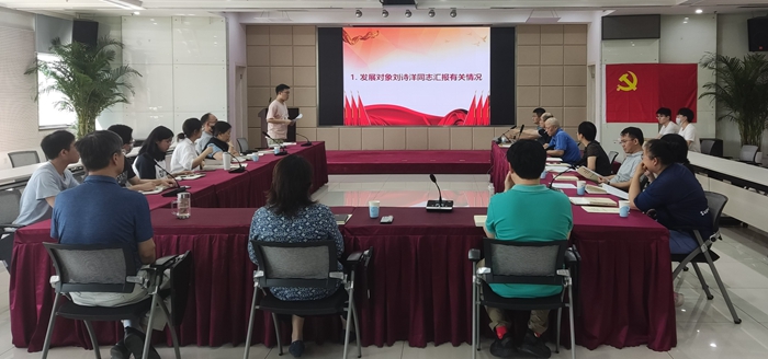 首先,会议讨论发展党员事宜。发展对象刘诗洋宣读了入党志愿书,汇报了个人基本情况、对党的认识、入党动机等;入党介绍人赵榆霞和张荻琴分别介绍了刘诗洋在提交入党申请书后的理论政治学习、思想党性教育、科研工作和日常生活的考察情况,表明意见同意刘诗洋入党;组织委员马望京代表支委会宣读了对刘诗洋的政治审查报告,与会党员对刘诗洋能否入党进行了充分讨论。经支部大会无记名投票表决,一致同意接收刘诗洋为中共预备党员。