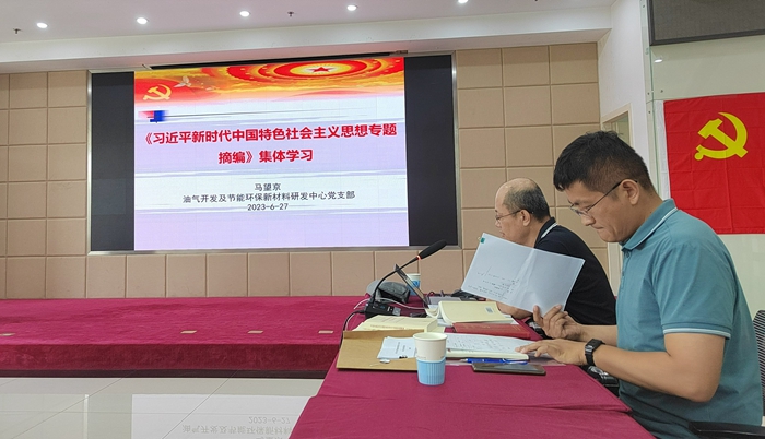6月27日,油气开发及节能环保新材料党支部召开党员大会,发展党员、开展学习贯彻习近平新时代中国特色社会主义思想主题教育集中学习。会议由油气中心党支部副书记安振国主持,党委委员王越超应邀参加会议。