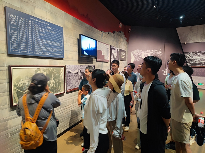 第二站,党支部来到了位于河北雄安新区境内的白洋淀。抗日战争时期,在淀泊相连、苇壕纵横的白洋淀上,长期活跃着一支由渔民和农民组成的令敌人闻风丧胆的水上游击队——雁翎队。在白洋淀雁翎队纪念馆,通过大量翔实、丰富、珍贵的历史照片、图表、文献资料、流传下来的实物与形象雕塑,以及中、日、英三种语言书写的文字资料,大家重新回顾了雁翎队的发展历程。