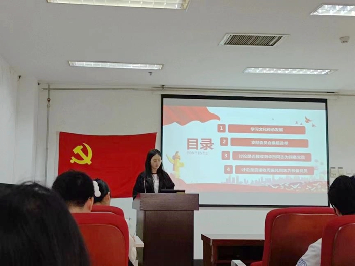 之后,会议讨论了是否接收周琬芃同志为预备党员事宜。发展对象周琬芃宣读了《入党志愿书》,汇报了自己对党的认识、入党动机及个人基本情况。入党介绍人章茜、达旭文介绍了周琬芃有关情况,并对其能否入党表明意见。党支部委员会报告了对周琬芃的政审情况。经大会充分讨论、全体党员投票表决同意接收周琬芃同志为预备党员。