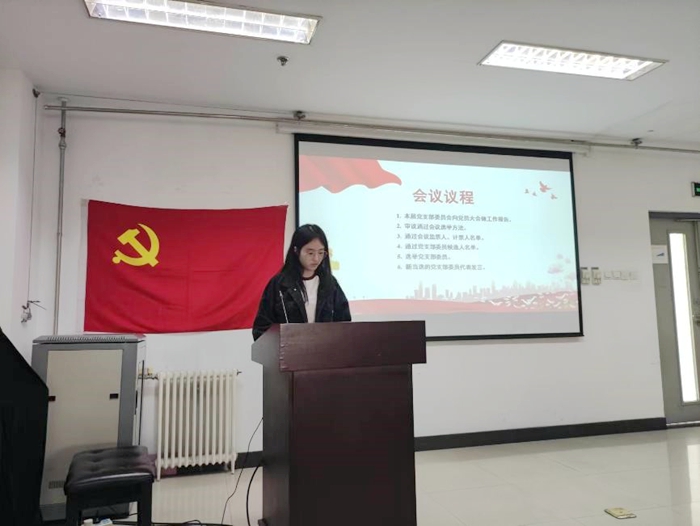 接着,会议进行支部委员会换届选举。宣传委员吴瑶代表本届党支部委员会向党员大会作工作报告,青年委员程琳介绍了党支部委员候选人名单。经大会充分讨论、全体党员投票表决,选举出了新一届支部委员会委员。