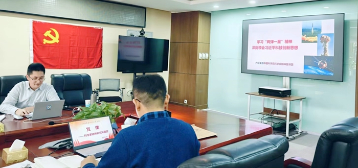在弘扬科学家精神党课部分,支部通过学习“两弹一星”精神,深刻体会科学家精神和习近平科技创新思想。中心主任严开祺介绍了“两弹一星”(核弹、导弹、人造卫星)的研发历程,讲述了“两弹一星”23位功勋科学家和多个科研团体的卓越贡献与感人事迹,以及“热爱祖国、无私奉献、自力更生、艰苦奋斗、大力协同、勇于登攀”的精神。同时,介绍了习近平关于科技创新的重要谈话和会议精神,号召同志们脚踏实地做“国家事”、坚定信念担“国家责”。