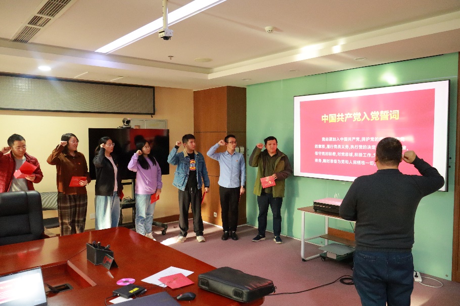 会议组织各党小组进行了党员民主评议,并为第一季度入党的同志集体过政治生日。赵密广为第一季度入党的同志颁发了政治生日贺卡,并带领大家重温了入党誓词。
