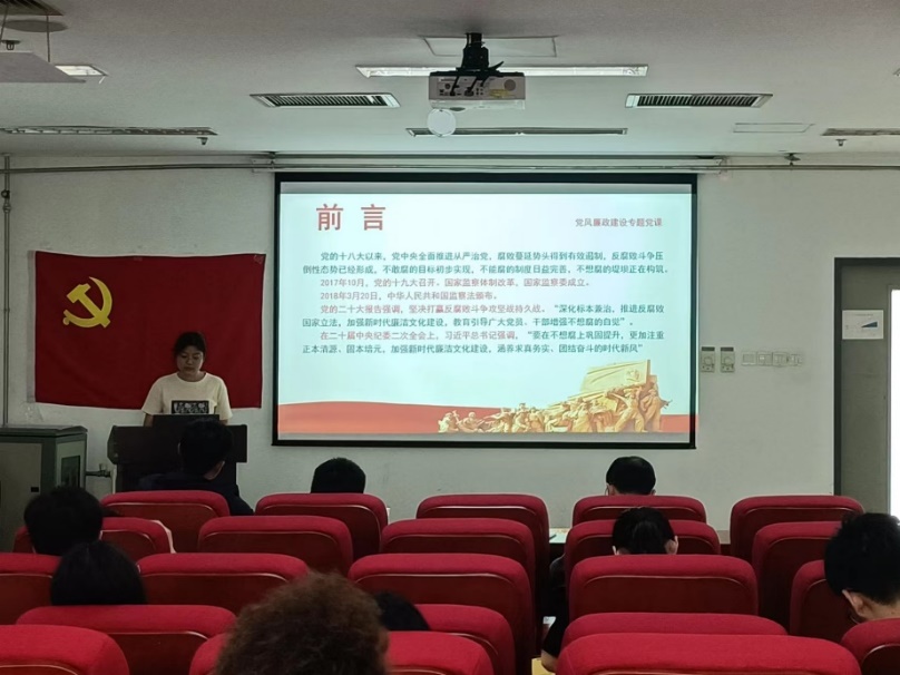 支部宣传委员吴瑶带领大家学习了党员干部应该如何守住守牢拒腐防变防线,强调了要守住内心,从小事小节上守起,要层层设防、处处设防,始终不放纵、不越轨、不逾矩。