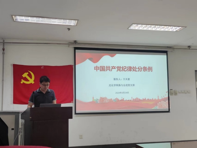 为增强党员纪律意识,提高党性修养,5月29日,光化学转换与合成党支部召开全体党员大会,开展纪律教育专题学习。