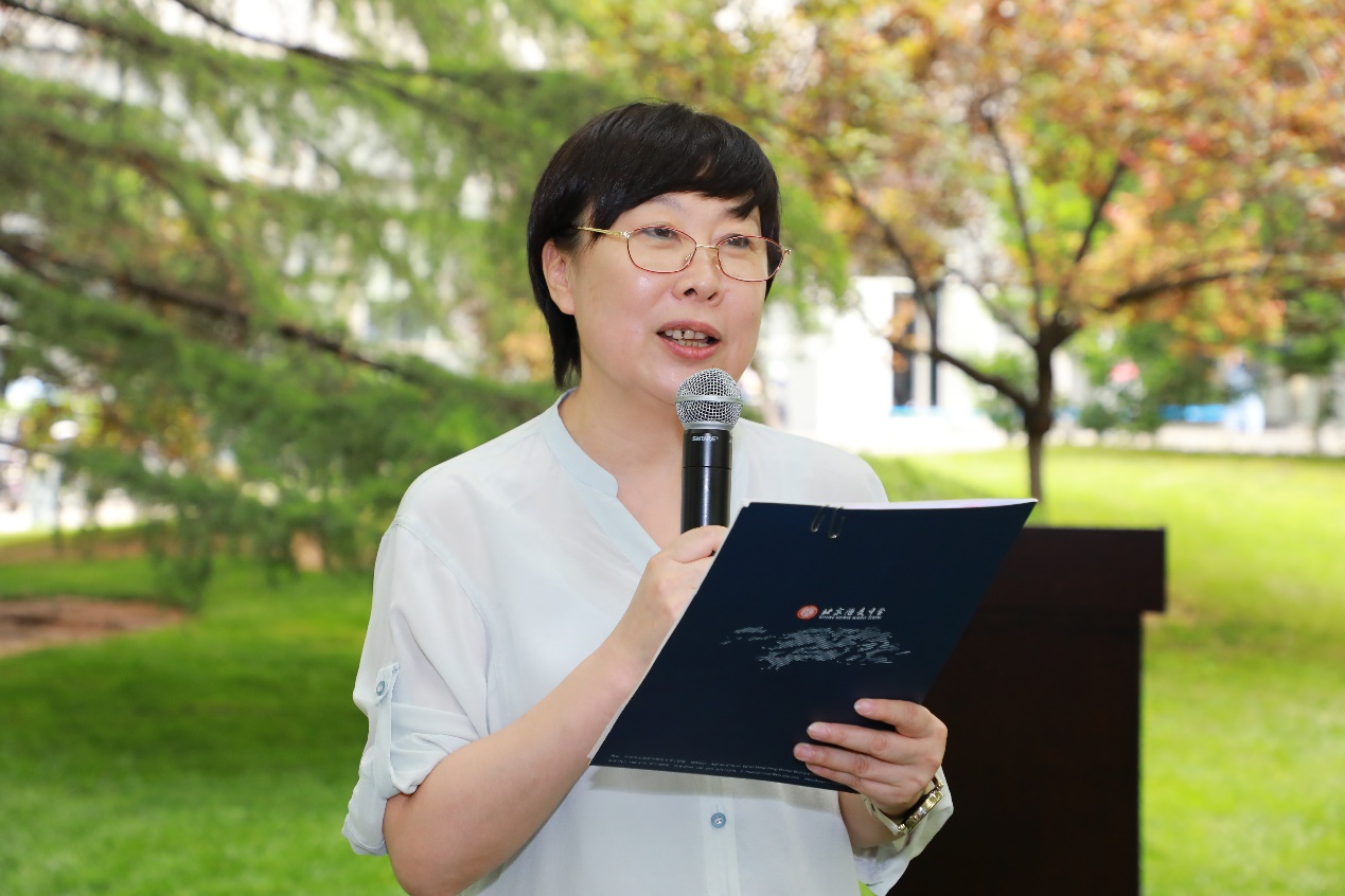 北京汇文中学党委书记陈东致辞。她对理化所的热情邀请表示感谢,回顾了洪朝生先生在汇文中学的学习经历,表示汇文中学要向洪朝生先生等杰出校友学习,为祖国培养更多的堪当民族重任的人才。