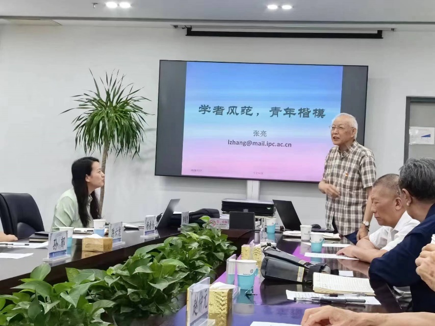 接着,离退休中关村北片党支部张亮研究员以《学者风范,青年楷模—洪朝生》为题作了报告,回顾了洪朝生先生近80年的科研和教学生涯中,留下的科技遗产和精神财富。他指出,以洪朝生先生为代表的老一辈科学家,严谨治学、以德修业的大家风范,真抓实干、崇尚实践的工作作风,是科学家精神的集中体现,为青年科技工作者提供了榜样力量。在场党员纷纷表示,生活在新时代的我们应当继承和弘扬“爱国、创新、求实、奉献、协同、育人”为核心的科学家精神,牢记先辈们的爱国事迹、丰功伟绩,时刻警醒自身,做好本职工作,在薪火相传中肩负起新时代赋予的使命,为实现高水平科技自立自强而不懈奋斗。