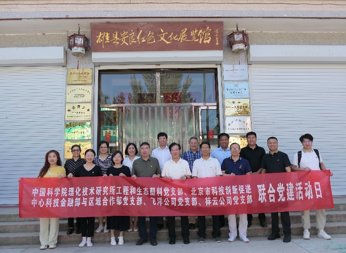 9月6日,理化所工程中心党支部联合北京市科技创新促进中心科技金融部与区域合作部党支部、雄县飞洋环保包装科技有限公司党支部和廊坊祥云化工有限公司党支部在雄安新区举办党建活动,活动以“抢占科技制高点,雄安新区芦苇综合利用”为主题,主要内容包括党建座谈交流、参观雄县安良红色文化展览馆、参观企业生产车间等。