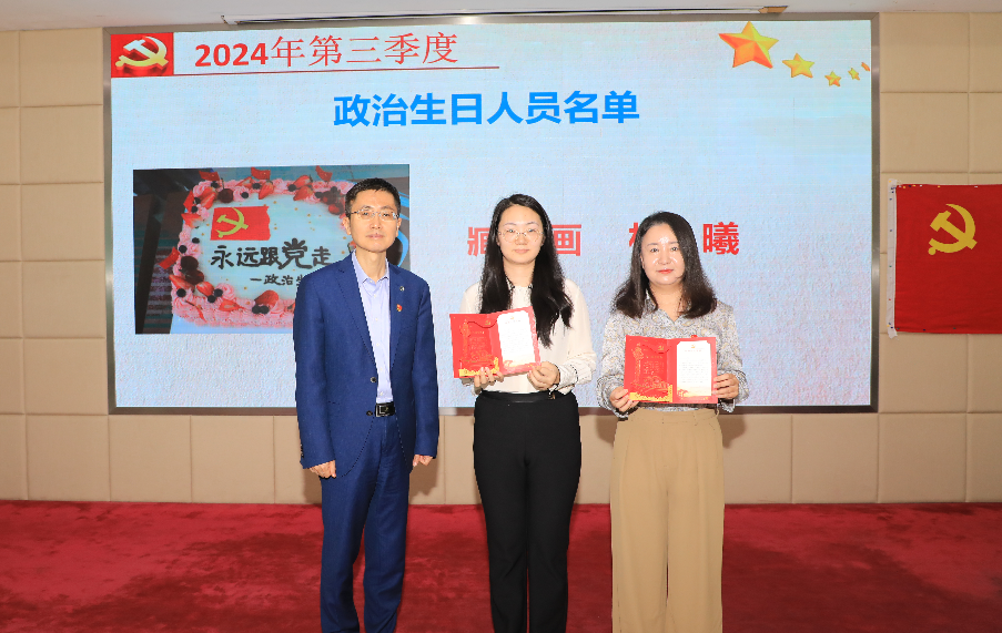 会议为第三季度入党的党员同志过政治生日。所长王雪松为党员同志们颁发了生日贺卡。每位过政治生日的党员以“向未来”为主题进行发言,展望使命担当,结合工作实际,交流了对抢占科技制高点的感悟体会。在杨曦同志的领誓下,全体党员重温了入党誓词。此外,支部为每位同志发放了《事业单位工作人员基本工作能力》一书,希望通过学习进一步提升同志们的工作能力和业务水平。