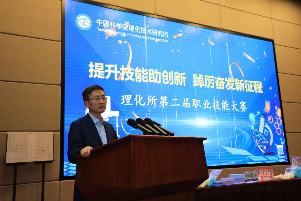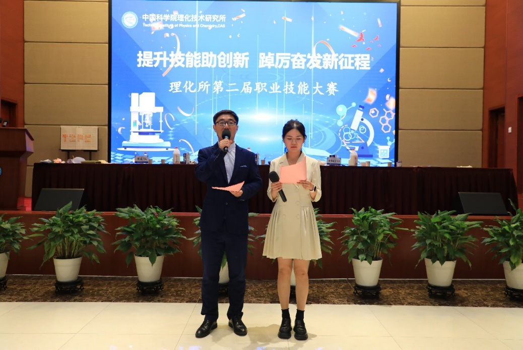 为庆祝新中国成立75周年、中国科学院建院75周年和理化所组建25周年,深入实施科教兴国、人才强国战略,不断提升职业技能,大力弘扬精益求精的工匠精神和科学家精神,9月23日下午,所工会、团委在廊坊园区C1报告厅举办理化所第二届“提升技能助创新 踔厉奋发新征程”职业技能大赛。理化所所长王雪松、纪委书记袁庆智、评委嘉宾、参赛选手及观众等100余人参加本次活动。活动由党办副主任李东辉及团委书记陈晨主持。