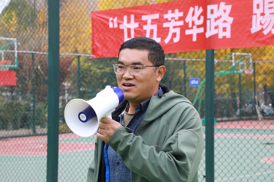 接下来,纪委书记袁庆智致开幕词。他表示,本次比赛不仅有所内的职工和学生队,还邀请了院机关队和理化校友队,希望大家利用这个平台以赛会友增进彼此友谊,以赛聚心凝聚团结力量。最后,他预祝本届赛事取得圆满成功。