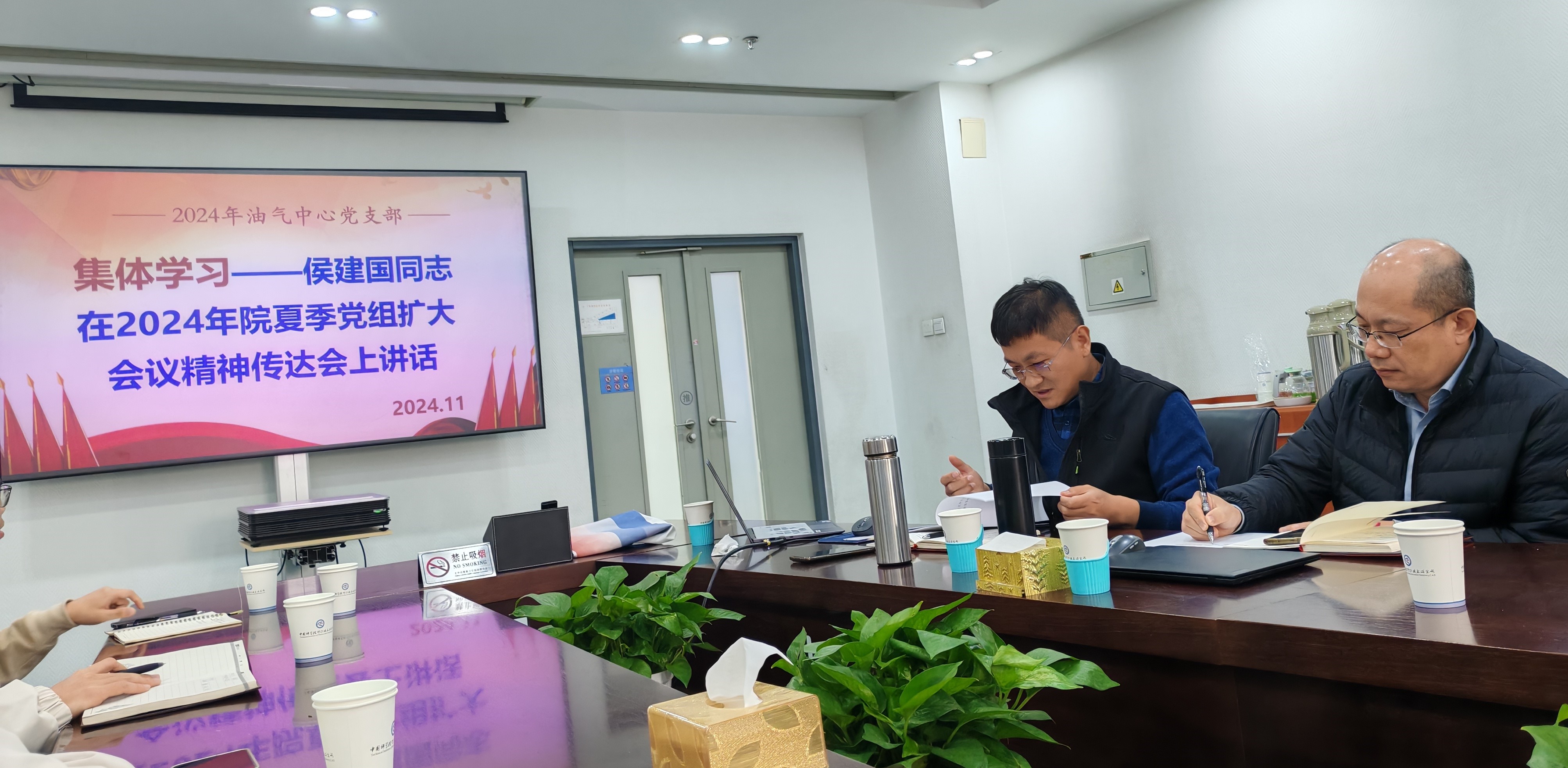 为深入学习贯彻党的二十届三中全会精神,为抢占科技制高点凝心聚力,11月8日,油气开发及节能环保新材料中心党支部召开党员大会,进行集中理论学习并为三、四季度入党的党员过政治生日。会议由支部副书记安振国主持。