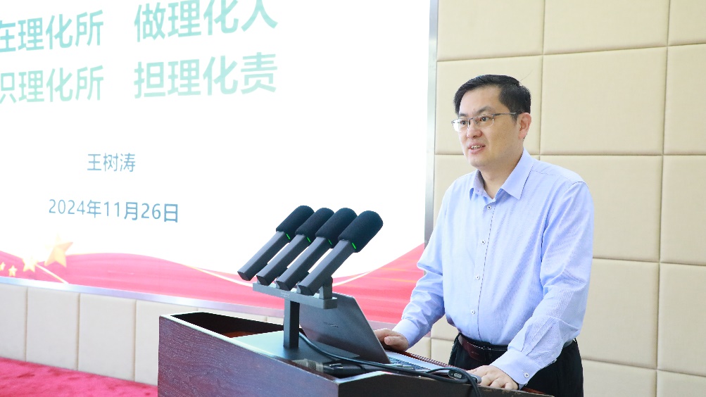 王树涛作了题为《在理化所 做理化人 识理化所 担理化责》的报告。他首先领学了党的二十届三中全会精神和中国科学院2024年夏季党组扩大会议精神,接着回顾了理化所的发展历程和老一辈科学家的感人事迹,希望年轻一代继续秉承自强、务实、和谐、创新的所训精神,锐意进取,接续奋斗,用激扬的青春,在实现高水平科技自立自强中彰显青年担当。