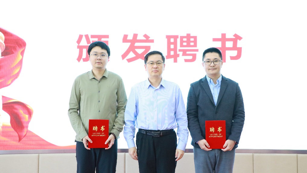 王树涛为理化所新一届青年理论学习小组组长严开祺、副组长吴雨辰颁发聘书,所有参会人员合影留念。