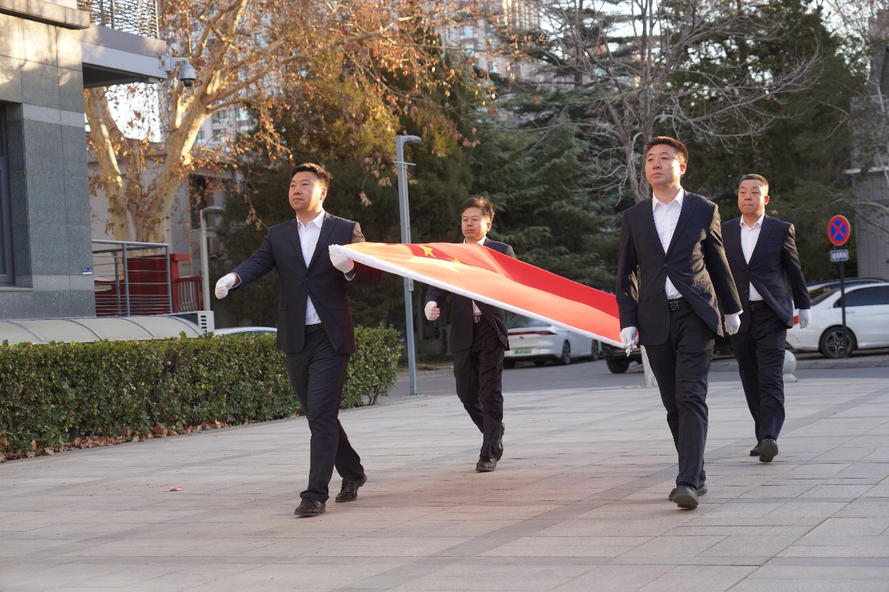 上午8时30分,升国旗仪式正式开始。在冬日朝阳中,护旗手王轶锋、陈德元、肖吉林、孙毅然迈着整齐的步伐护送鲜艳的五星红旗入场,将国旗庄重地交到升旗手韩旭、孙兴明手中。伴随着雄壮激昂的《义勇军进行曲》,在场全体人员高唱国歌,肃立向国旗行注目礼,表达对伟大祖国的深切热爱和2025年的美好愿望,五星红旗冉冉升起在理化所的上空。