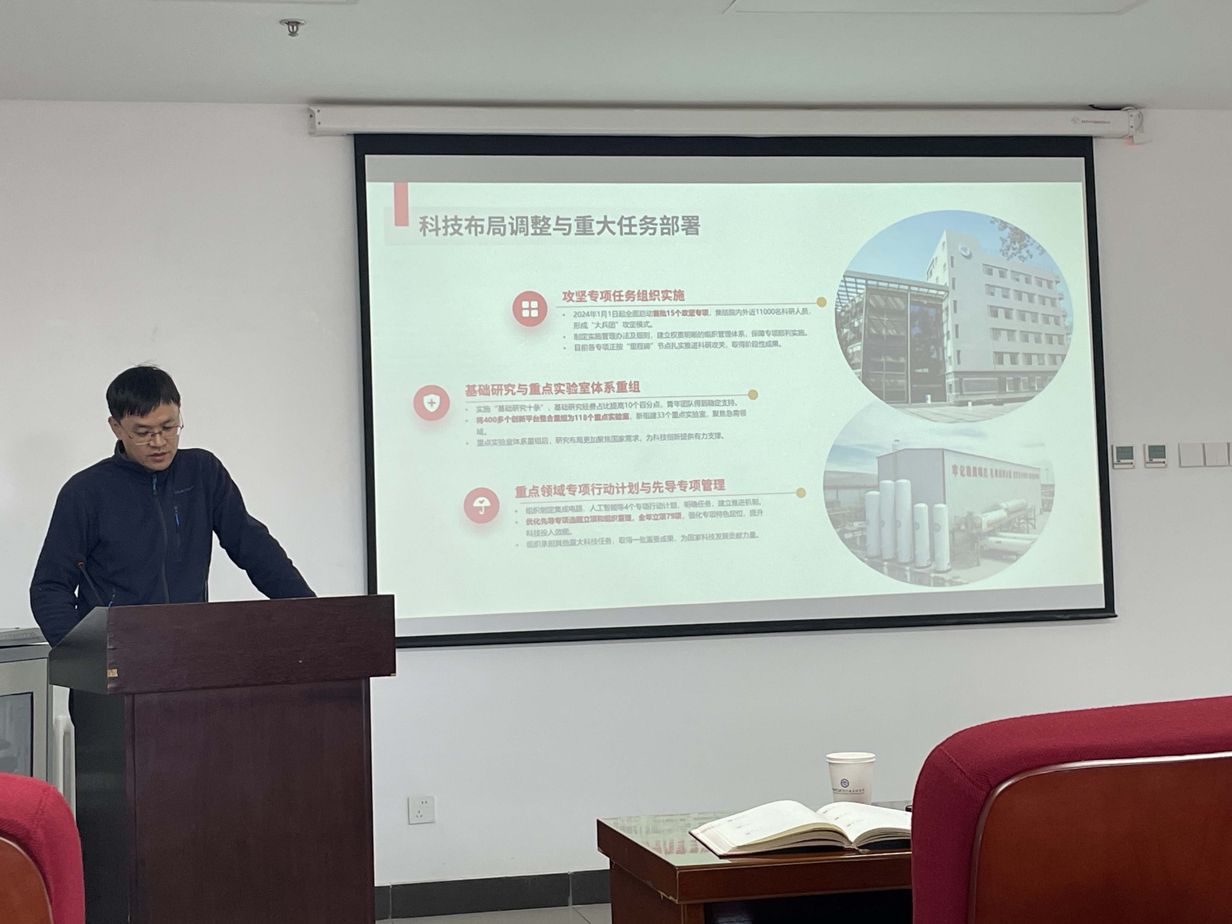 首先,支部书记彭楠作了“锐意改革进取,奋力攻坚克难”主题报告,传达中国科学院2025年度工作会议精神,重点对科技布局调整和重大任务部署情况进行了全面介绍,并介绍了重大创新成果与人才培养相关政策。结合报告,彭楠鼓舞大家聚焦抢占科技制高点,为实现“四个率先”和“两加快一努力”目标努力奋斗。与会同志纷纷表示要将会议精神融入日常工作中,立足本职建功立业。