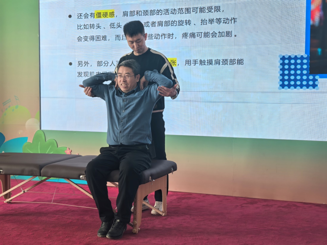 在体态管理备受重视的当下,杨鑫磊还开展了 “体态诊断” 内容,引导大家关注隐藏在日常姿态中的失衡问题,并传授重塑完美体态的方法与技巧。讲座最后,杨老师聚焦 “预防指南”,为大家阐述如何打造抗衰护甲,延缓衰老进程,为职工们的健康生活提供了长远规划的思路。