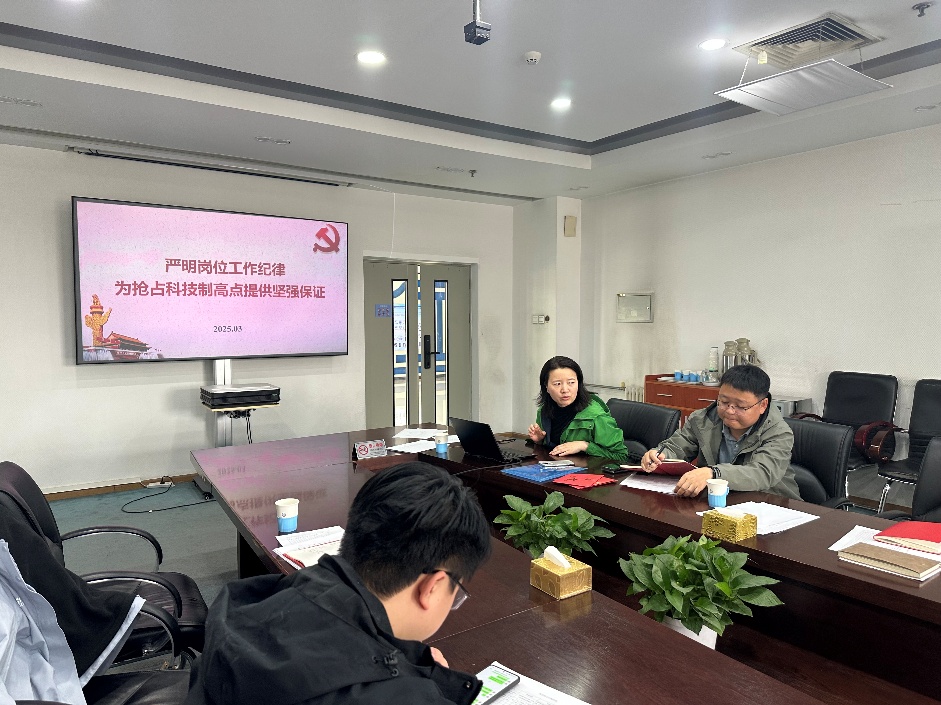 随后,王格侠讲授了“严明岗位工作纪律”党课,并通报了2024年部门考勤情况,她强调要从严格遵守规章制度、强化考勤管理、提高责任意识、加强监督与问责等方面落实岗位工作纪律,为抢占科技制高点提供坚强保证。