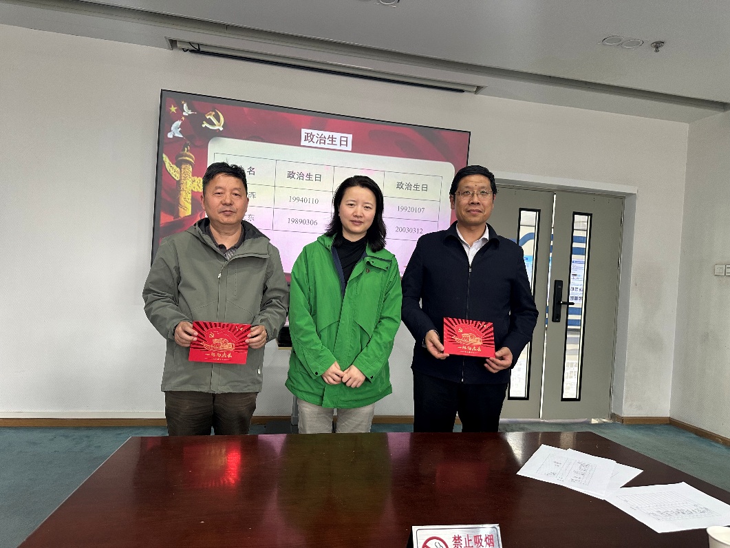 最后,为第一季度入党的同志过政治生日。王格侠向4位同志颁发贺卡,并合影留念,她希望同志们牢记初心,不忘使命,持续在各自的工作岗位上发挥模范带头作用。