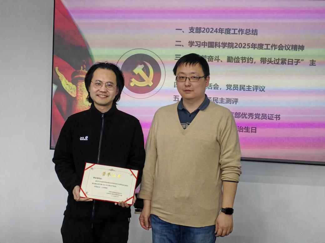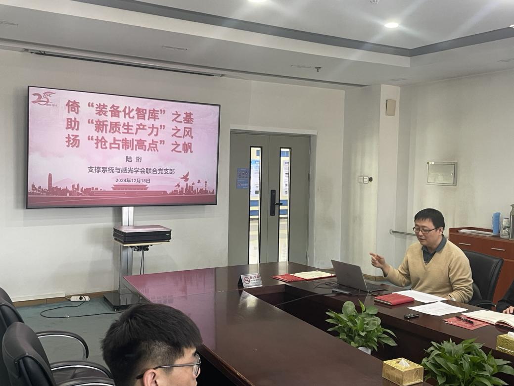 会议首先进行2024年支部工作总结。支部书记陆珩同志从年度工作计划和上级部署任务完成情况、支部特色工作以及2025年工作思路三部分详细介绍了支部在2024年度的工作情况,总结了全年支部工作的特点和突出优势,也指出了在工作中的不足。他督促党员同志们在新的一年里要弘扬科学家精神,向高而攀,以多层次、多维度、多渠道、多形式、多领域扎实支撑助力科技制高点。