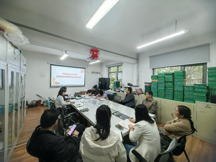 会上党支部书记讲授了专题党课,以“严明岗位工作纪律为抢占科技制高点提供坚强保证”为主题,从党的优良传统、履行国家战略科技力量职责以及“三项制度”保障抢占科技制高点等方面解读了严明工作纪律的必要性和重要意义。