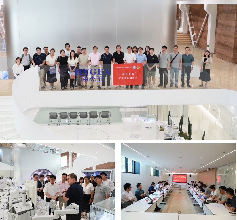 随后,学习小组来到海杰亚调研。在海杰亚创新中心,企业技术总监肖剑给学习小组成员们介绍了企业如何将理化所基础性的成果转化为临床应用的微创手术器械和肿瘤治疗设备。目前,该公司的医疗设备不仅具有国际领先水平,在实际临床应用中也取得了显著成效,为上万例患者带来了更多的治疗选择和更好的治疗效果。