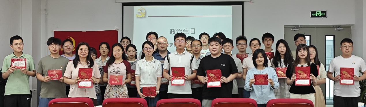 随后党员集体过“政治生日”。宣传委员张飞龙同志颁发了生日贺卡,由支部书记郑美玲领誓,全体党员重温了入党誓词。