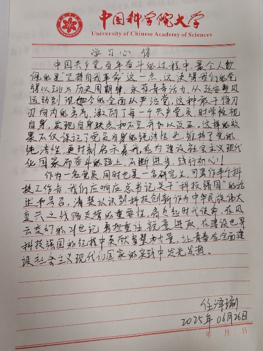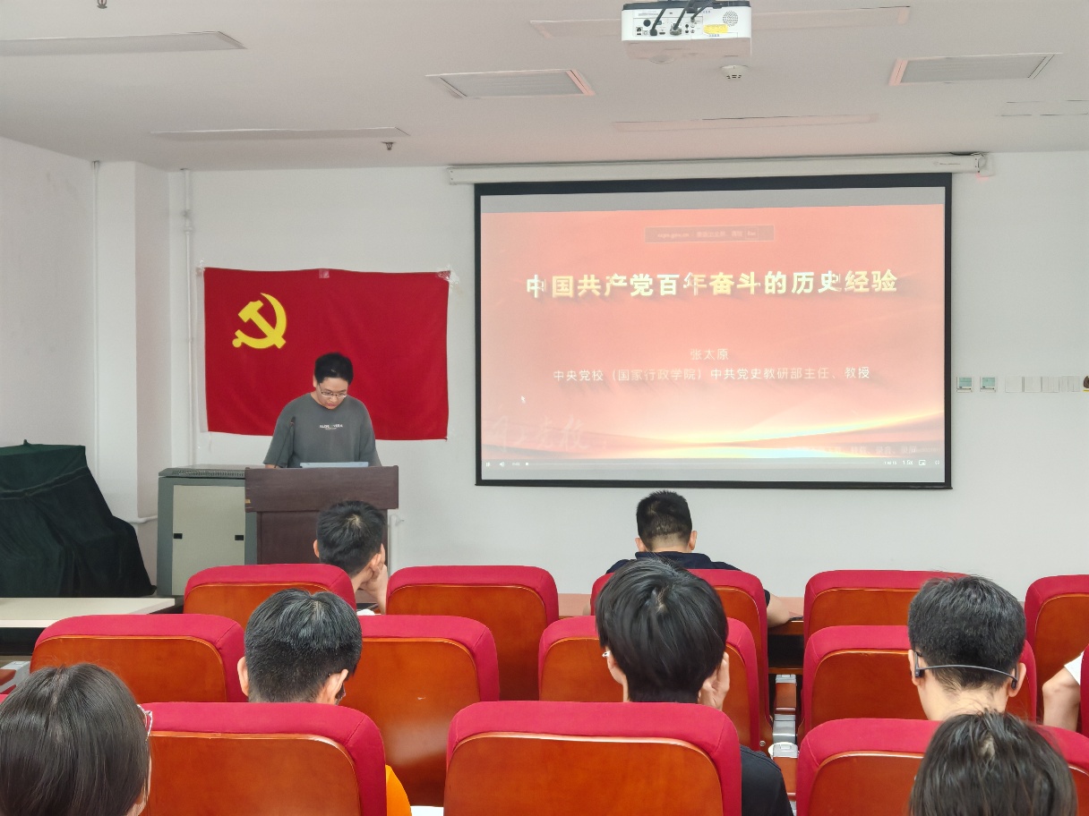 随后举行学习贯彻习近平新时代中国特色社会主义思想专题培训党员联学班,全体党员观看了由张太原教授主讲的《中国共产党百年奋斗的历史经验》,深入学习了中国共产党的成功经验与历史教训。接着,组织观看了由侯建国主讲的《深入学习贯彻习近平总书记关于科技创新的重要论述——在科技强国建设伟业中再立新功》,让大家深入了解我国科技创新的政策与最新要求,进一步增强奋力抢占科技制高点的责任感和使命感。