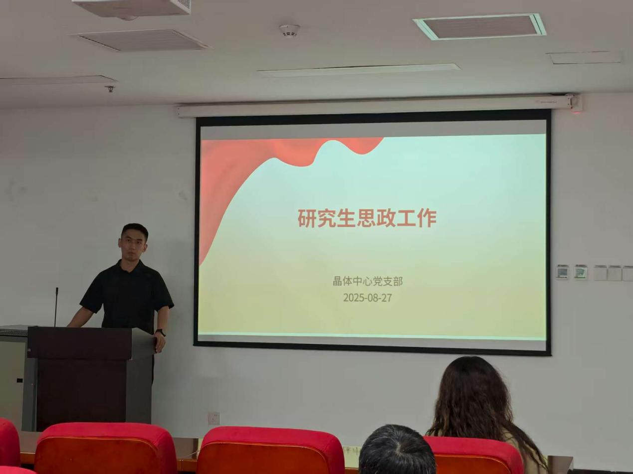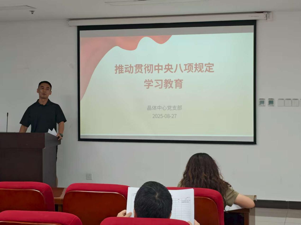 8月27日,晶体中心党支部召开支部党员大会,开展深入贯彻中央八项规定精神学习教育和研究生思政工作等。会议由支部组织委员公丕富主持,支部全体党员和新入所学生参加。