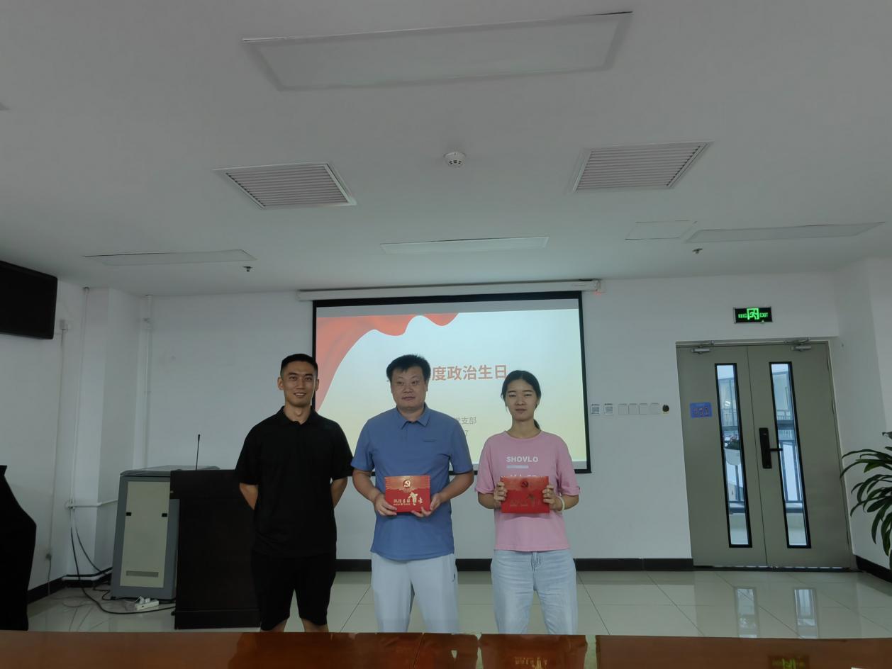 接着,会议为第三季度入党的四位同志集体过“政治生日”。公丕富代表支部送上政治生日贺卡并合影留念。夏明军和王桂丽分享了此次集中学习研讨的感悟及各自的科研体会。
