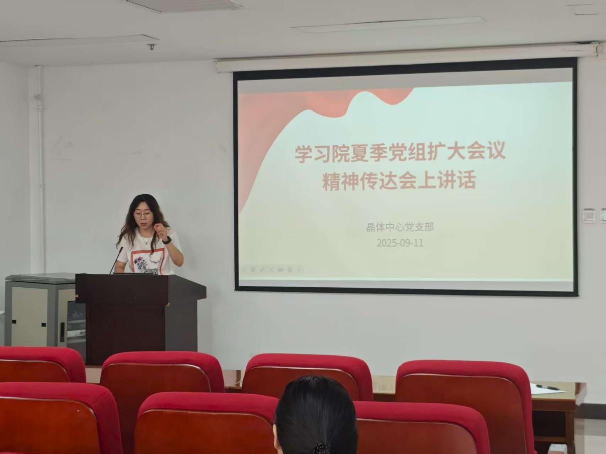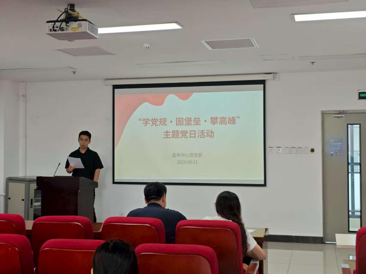 9月11日,晶体中心党支部召开党员大会,集中学习侯建国同志在中国科学院2025年夏季党组扩大会议精神传达会上的讲话,开展“学党规·固堡垒·攀高峰”主题党日及“四好”党员榜样学习活动。会议由组织委员公丕富主持。