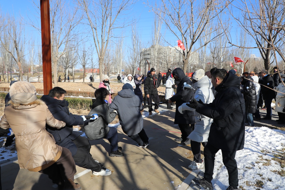 活动伊始,各分工会在指定地点集结自己的队伍,并为每位参加活动的职工发放有理化所标识的袖标和集福手卡。随后,在健身教练的带领下,全体活动人员跳起了“刀削面”热身操,满操场的欢声笑语驱散了深冬的寒意。