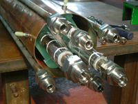 最近,BEPCII低温系统捷报频传,继制冷机验收完毕、超导腔低温阀箱和1000L杜瓦阀箱顺利安装之后,第二对撞点大厅多通道低温管线也于11月19日、20日完成了主管路的铺设,低温系统的建设工作进一步向前推进。 低温管线的制作是BEPCII低温系统的亮点之一。当初高能所考虑到氦低温管线的制作现场工作量比较大,希望在北京就近完成。经过与我所的友好协商,高能所确定了主要依靠我所的技术力量,将加工场地放在高能所的实施方案。 方案确定后,我所的技术人员在工艺流程的制订、车间的布局、工装的设计与加工、原材料的订购把关以及后来的生产操作的规范化、加工的指导与示范、原材料及产品质量的检验等方面倾注了大量的心血、发挥了不可替代的作用,为我所赢得了良好的声誉。 两所联合制作的氦多通道管线的现场也是众多关心BEPCII低温系统的相关国内外专家前往高能所考察的重点环节之一。在参观和了解了我们的制作工艺、查看了我们的产品之后纷纷给以了较高的评价,认为我们的制作与队伍是非常专业的。 目前低温管线的制作已经接近尾声,随着第二对撞点大厅主要低温管线安装完毕,第一对撞点大厅的管线铺设工作也将逐步展开。随着各项挑战逐一的攻克,低温系统也越来越接近最后的总目标,低温联合工作组的全体职工已经作好了充分的准备去迎接更大的挑战。