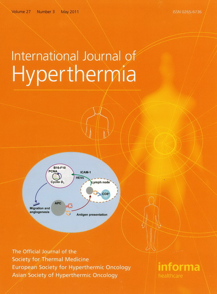 最新一期国际热疗学报(International Journal of Hyperthermia, vol.27, No.3, pp. 275-285, 2011),以封面文章形式发表了肿瘤全身热疗机制的研究成果。此项工作由刘静研究员领导的理化技术研究所低温生物与医学研究室与清华大学医学院生物医学工程系医学微系统技术实验室的联合小组完成,合作者中还有来自清华大学医学院基础医学系的师生。