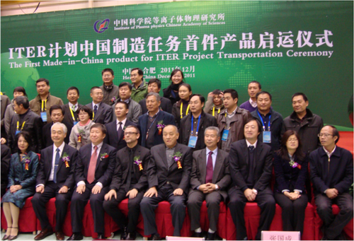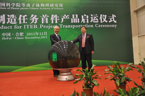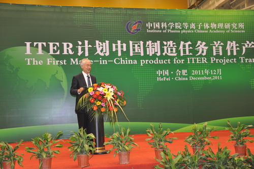 12月2日,等离子体物理研究所为国际热核聚变实验堆(ITER)计划中国制造任务的首件产品“ITER环向场(TF)超导导体”举办交付启运仪式。科技部副部长曹健林、ITER总干事 Motojima、中国国际核聚变能源计划执行中心(ITER中心)副主任罗德隆、中科院基础局副局长黄敏、安徽省科技厅厅长徐根应、ITER中心有关领导、合肥物质科学研究院院长王英俭以及该产品各协作单位代表出席了启运仪式。理化所李来风研究员、黄荣进副研究员作为协作单位代表受邀参加。