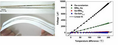 “梦之墨”技术具有普遍意义。事实上,在上述《PLoS ONE》文章刊出前,刘静小组还证明了该方法在直接印刷式微小测温传感器方面的应用价值,相应工作发表于美国物理学会出版的《应用物理快报》上(H.Y. Li, Y. Yang, J. Liu, Printable tiny thermocouple by liquid metal gallium and its matching metal, Applied Physics Letters, vol.101: 073511, 2012)。该项工作首次提出并研究了液态金属之间以及液态金属与固体金属界面间的热电效应。正如文章第一作者李海燕博士生所说,“使用两种配对液态金属将微型热电偶直接写到所需基底上,给使用带来了较大方便,相应技术在生物量测、微流体器件等方面有重要价值。实验发现,在0~200℃的温度区间内,两种液态金属界面间或液态金属与固态金属间的热电势对温度显示出高度的线性关系,这对于温度的精确测量十分有益。”迄今,在实验室内,研究小组还利用DREAM Ink技术制成了透明导电薄膜、天线、RFID元件等,它们均已展示出显著的实用性。(论文链接)