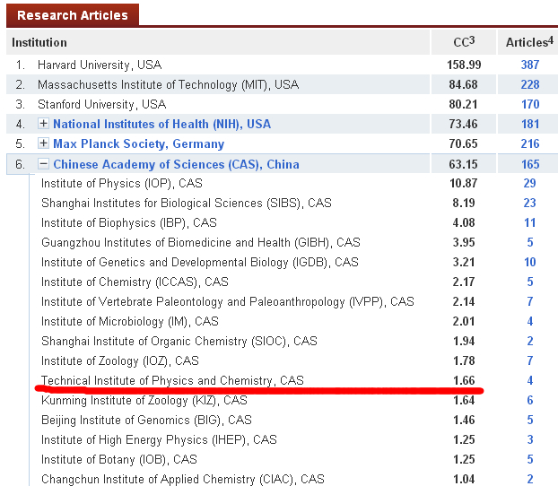 国际权威学术期刊《自然》杂志3月27日发布的年度报告显示,根据2013年在《自然》杂志上发表的高质量论文的贡献指数,中科院由上一年的14位跃升至全球第6位,并超过日本东京大学,排名亚太地区科研机构首位。