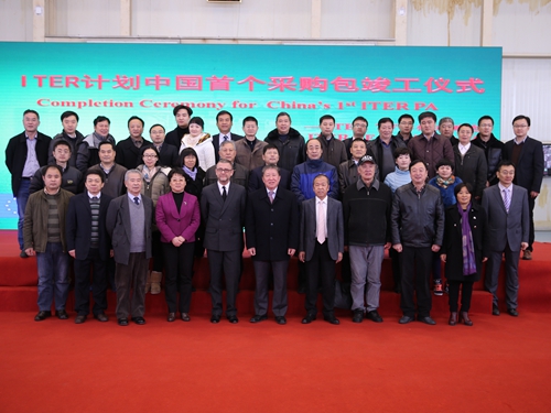 12月18日,国际热核聚变实验堆(ITER)计划中国首个采购包“ITER环向场(TF)导体”竣工仪式在中科院等离子体物理研究所举行,标志着ITER计划中国首个采购包圆满完成。科技部副部长曹健林、ITER组织导体部负责人阿诺戴维、中国ITER执行中心常务副主任罗德隆、安徽省科技厅副厅长罗平以及各合作单位代表出席了仪式。理化所所长助理王雪松研究员率队参加。