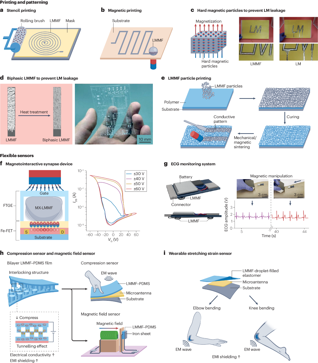 图4 液态金属基磁流体在印刷电子和柔性传感器中的应用