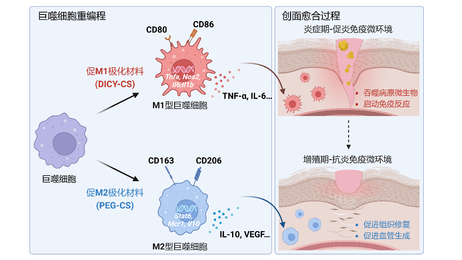 巨噬细胞极化调控材料分段联用促创面愈合策略