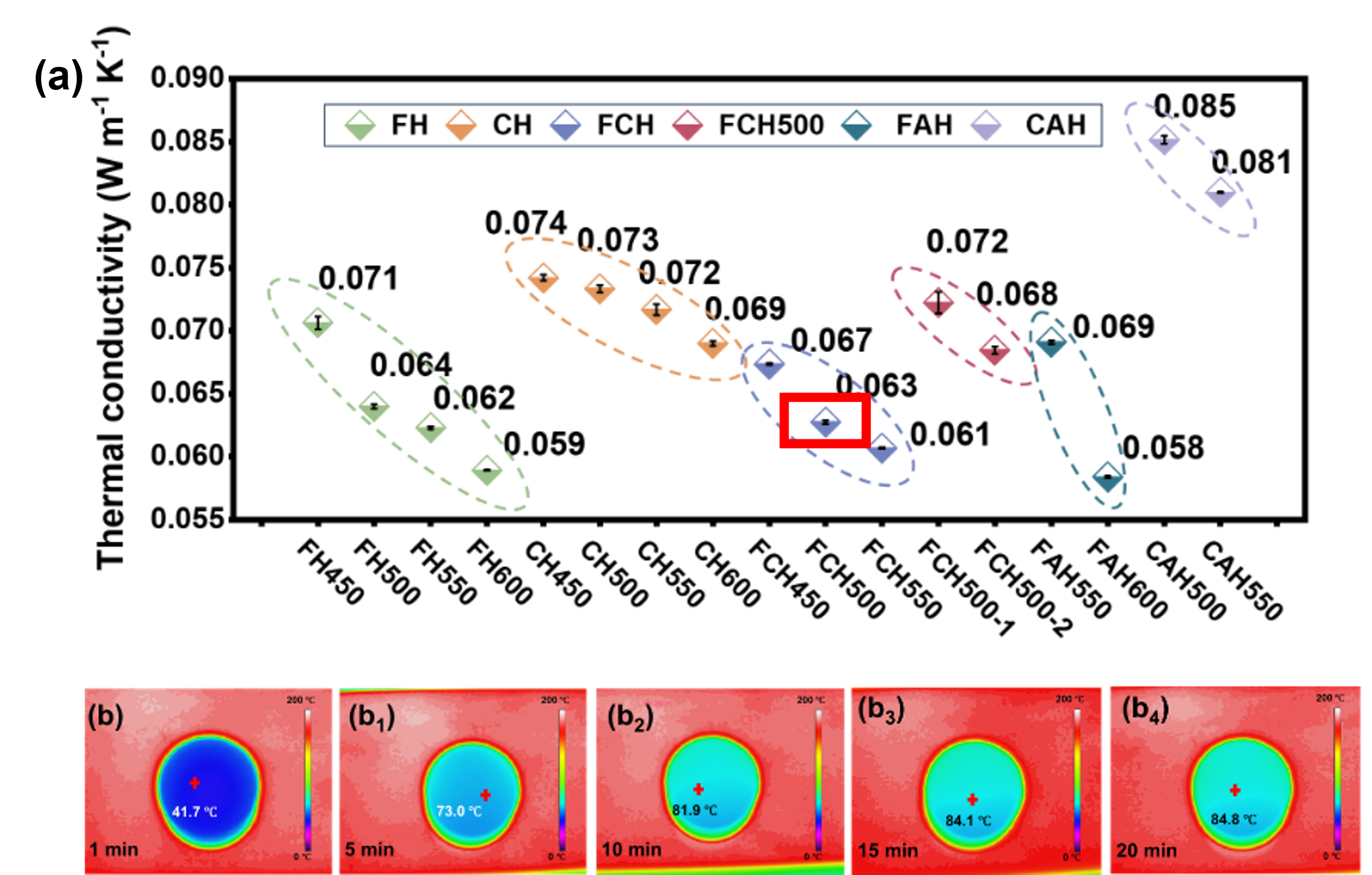(b)FCH500与PDMS复合材料对于200 °C热台的实际隔热性能。
