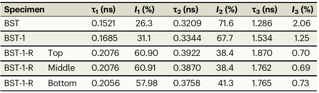 表2 BST、BST-1和BST-1-R的正电子湮没寿命谱(PALS)