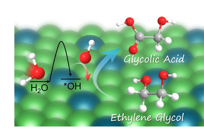 围绕以上重大战略需求,中国科学院理化技术研究所光化学转换与合成研究中心陈勇团队率先发展了碱性体系下乙二醇电氧化制备乙醇酸技术,并成功完成克级至十公斤级的放大制备研究,相关成果已发表于《自然・通讯》《德国应用化学》等国际权威期刊(Nat. Commun. 2025, 16, 4440; Angew. Chem. Int. Ed.2025, e202422183; Adv. Energy Mater.2024, 14, 2304065; Angew. Chem. Int. Ed.2023, 62, e202300094)。然而,碱性体系仍存在技术瓶颈:乙醇酸分离纯化流程复杂、废盐副产问题突出,这些缺陷与电催化技术所秉持的绿色化学理念相抵触,也推高了工业化落地成本。为突破上述瓶颈,研究团队创新性地提出中性体系下乙二醇电氧化制备乙醇酸的技术构想,并进一步凝练出该体系下的核心科学挑战——如何实现中间体*OH活性物种的高效生成与定向利用,为后续研究指明了关键方向。